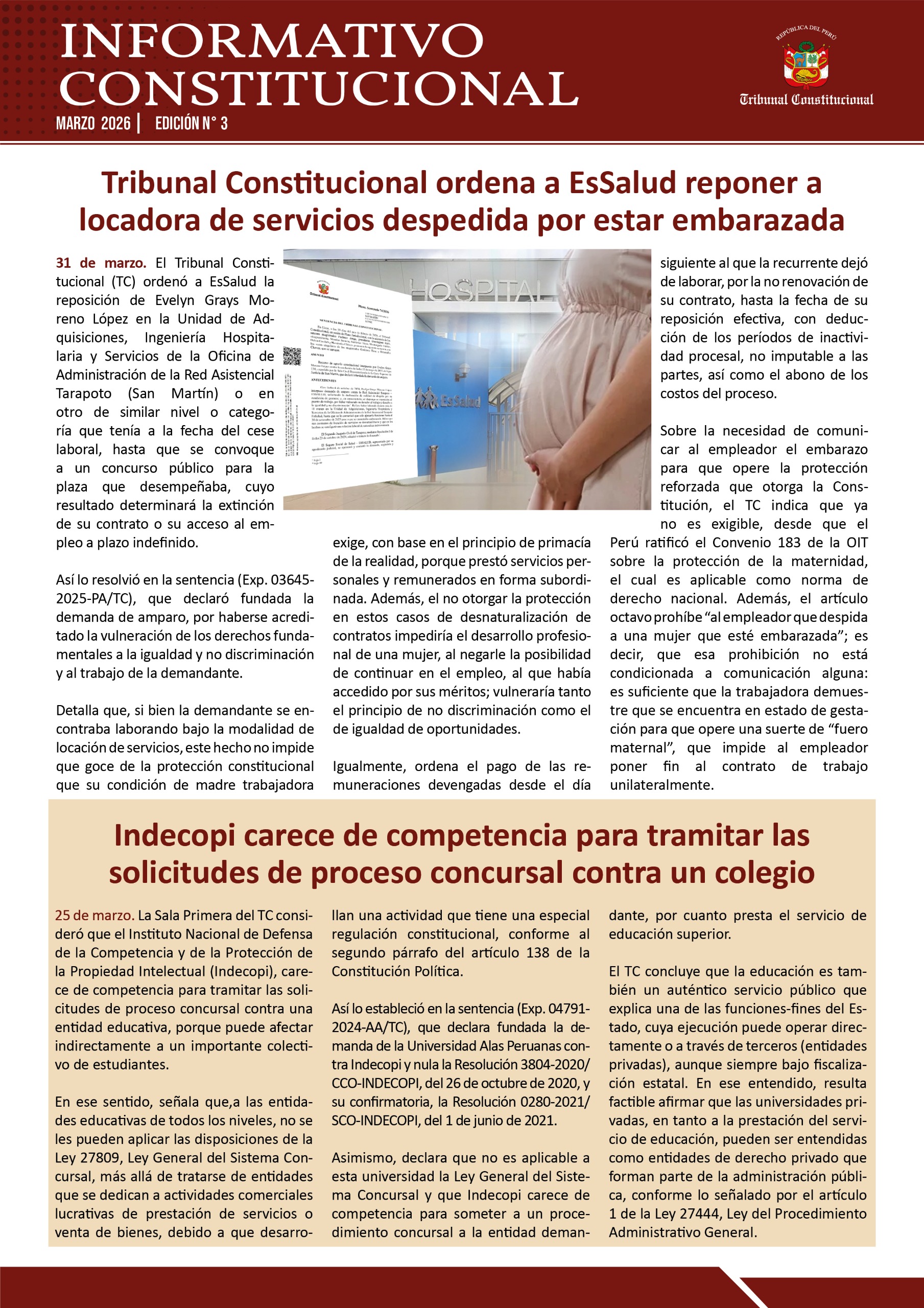 TRIBUNAL CONSTITUCIONAL ORDENA A ESSALUD REPONER A LOCADORA DE SERVICIOS DESPEDIDA POR ESTAR EMBARAZADA