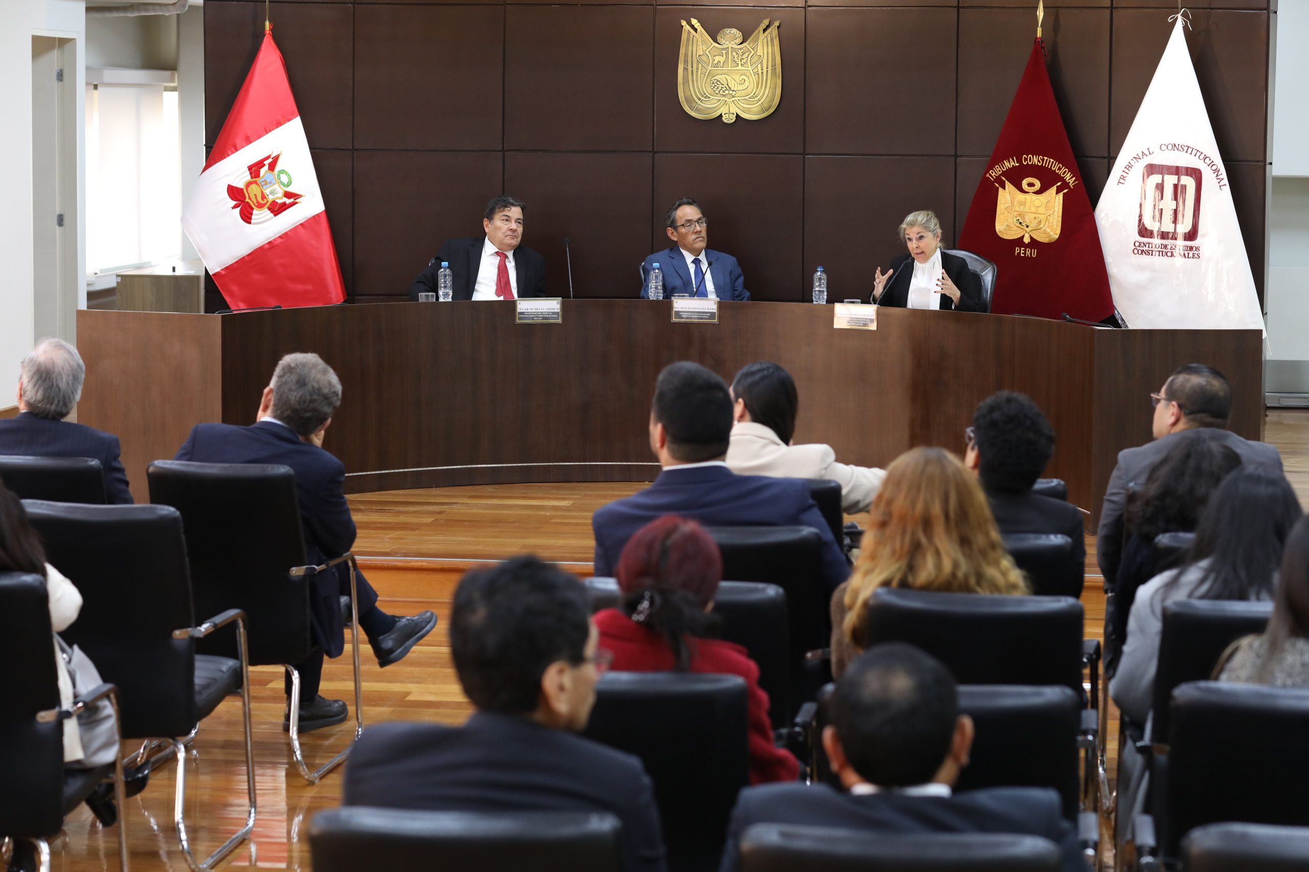 En la mesa de honor estuvieron presentes el presidente en funciones del TC, magistrado Helder Domínguez Haro, y el director general del CEC, magistrado César Ochoa Cardich.