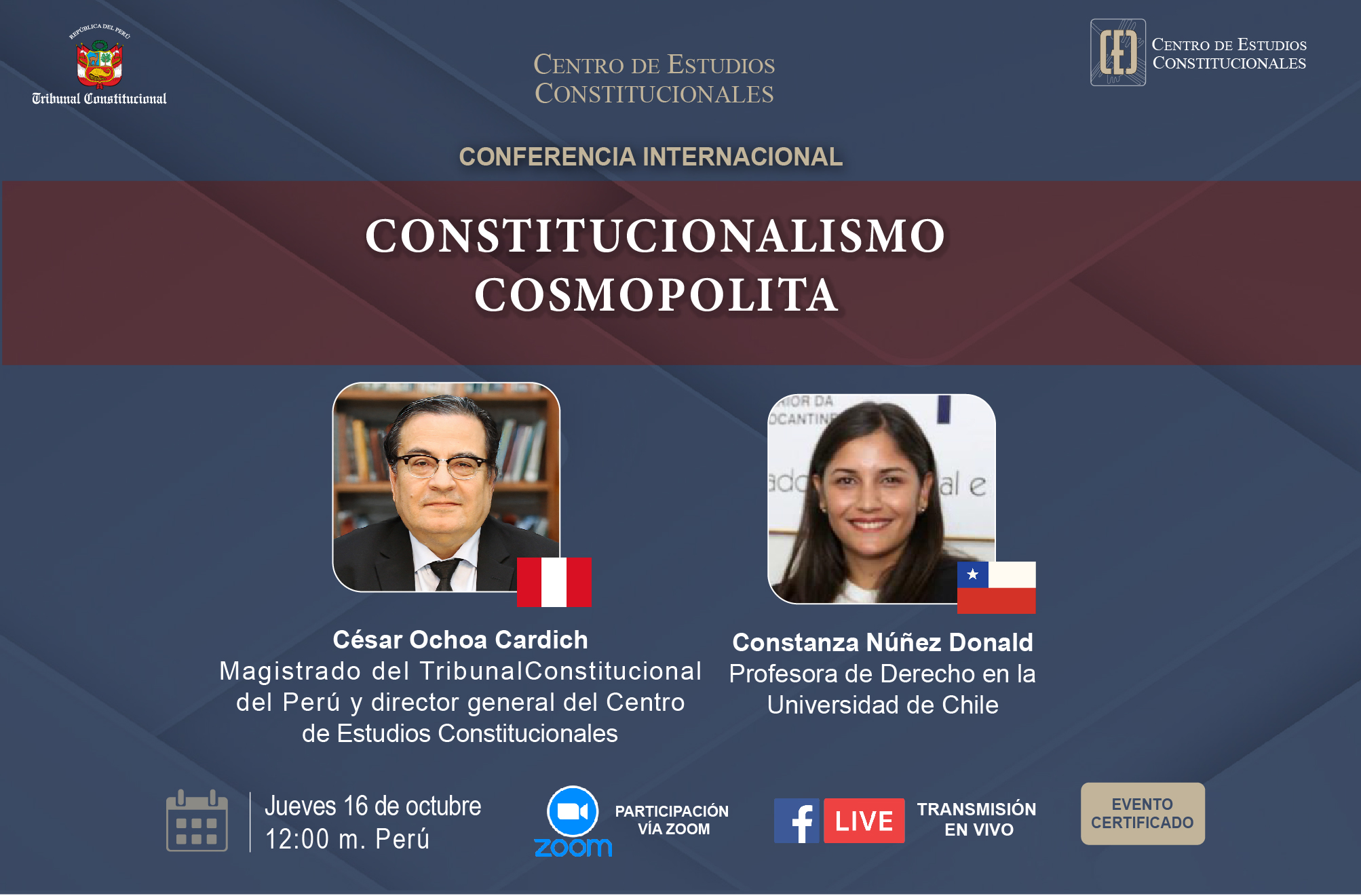 Con la participación del magistrado del Tribunal Constitucional (TC), César Ochoa Cardich, director general del Centro de Estudios Constitucionales (CEC), y de la profesora de Derecho en la Universidad de Chile, Constanza Núñez Donald, se realizará el próximo jueves 16 de octubre, al mediodía, la conferencia internacional “Constitucionalismo Cosmopolita”.