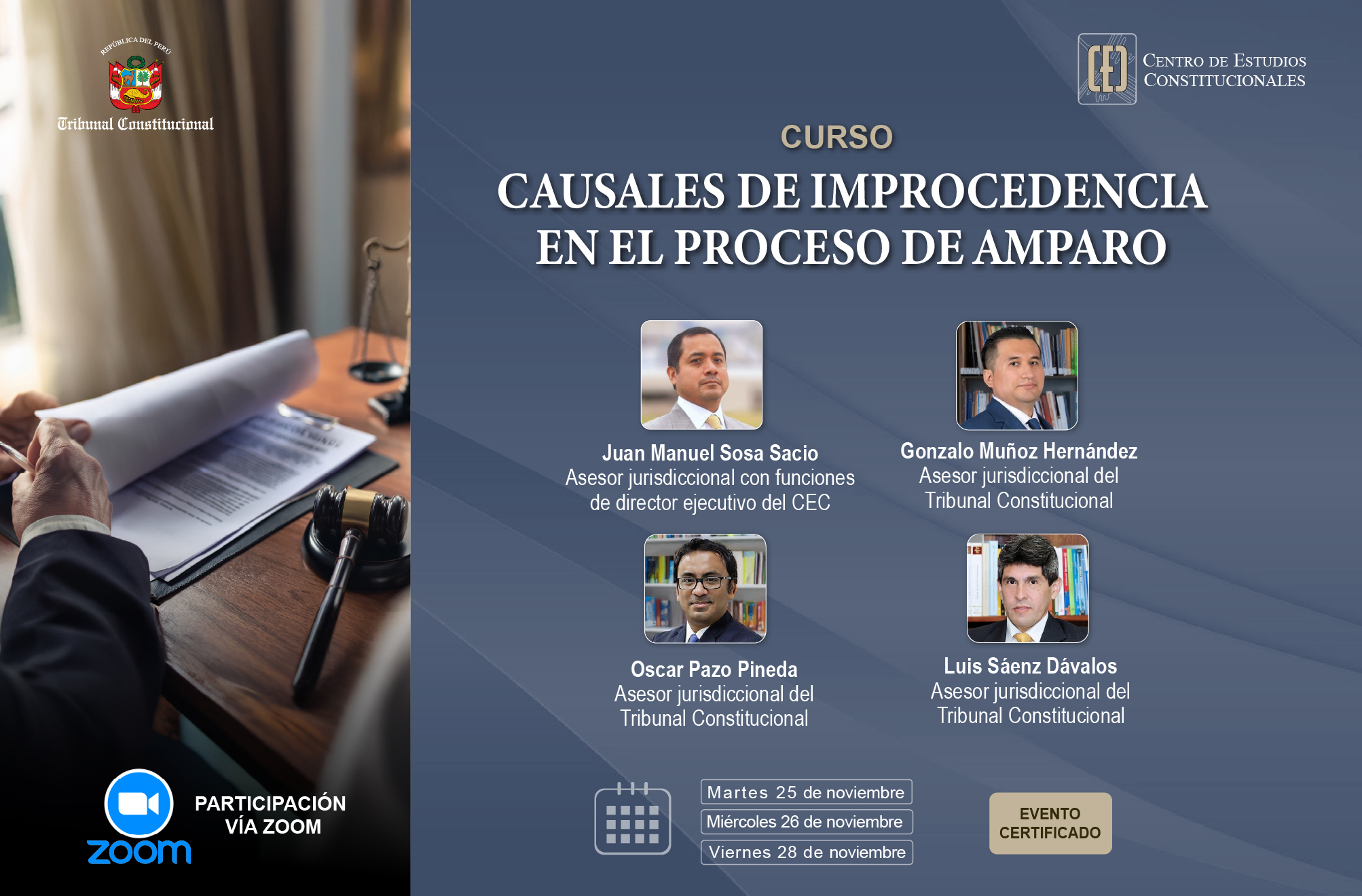 “CAUSALES DE IMPROCEDENCIA EN EL PROCESO DE AMPARO” ES EL CURSO QUE ORGANIZA EL CEC DEL TC EL 25, 26 Y 28 DE NOVIEMBRE