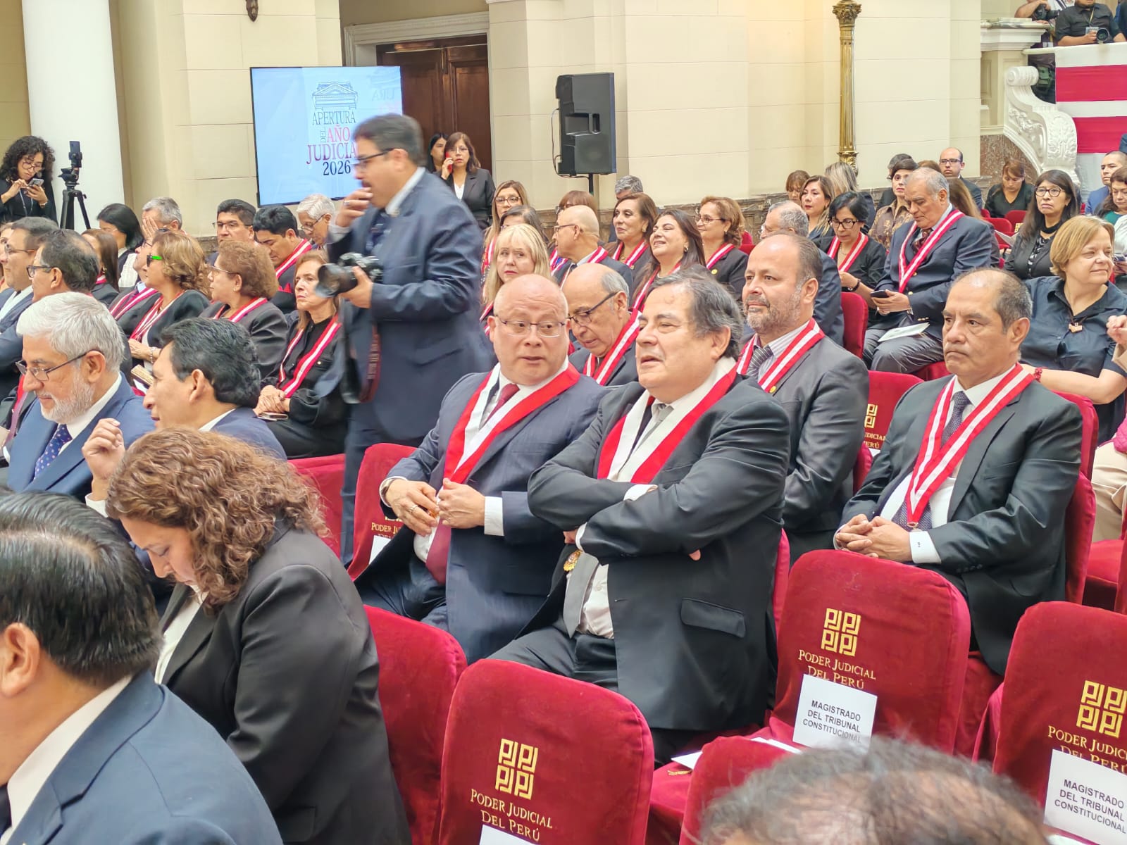 El acto protocolar se desarrolló en el salón Manuel Vidaurre del Palacio de Justicia con la presencia del presidente de la República, José Jerí Oré; la presidenta de la Corte Suprema de Justicia de la República, Janet Tello Gilardi, y el primer vicepresidente encargado de la presidencia del Congreso de la República, Fernando Rospigliosi Capurro.