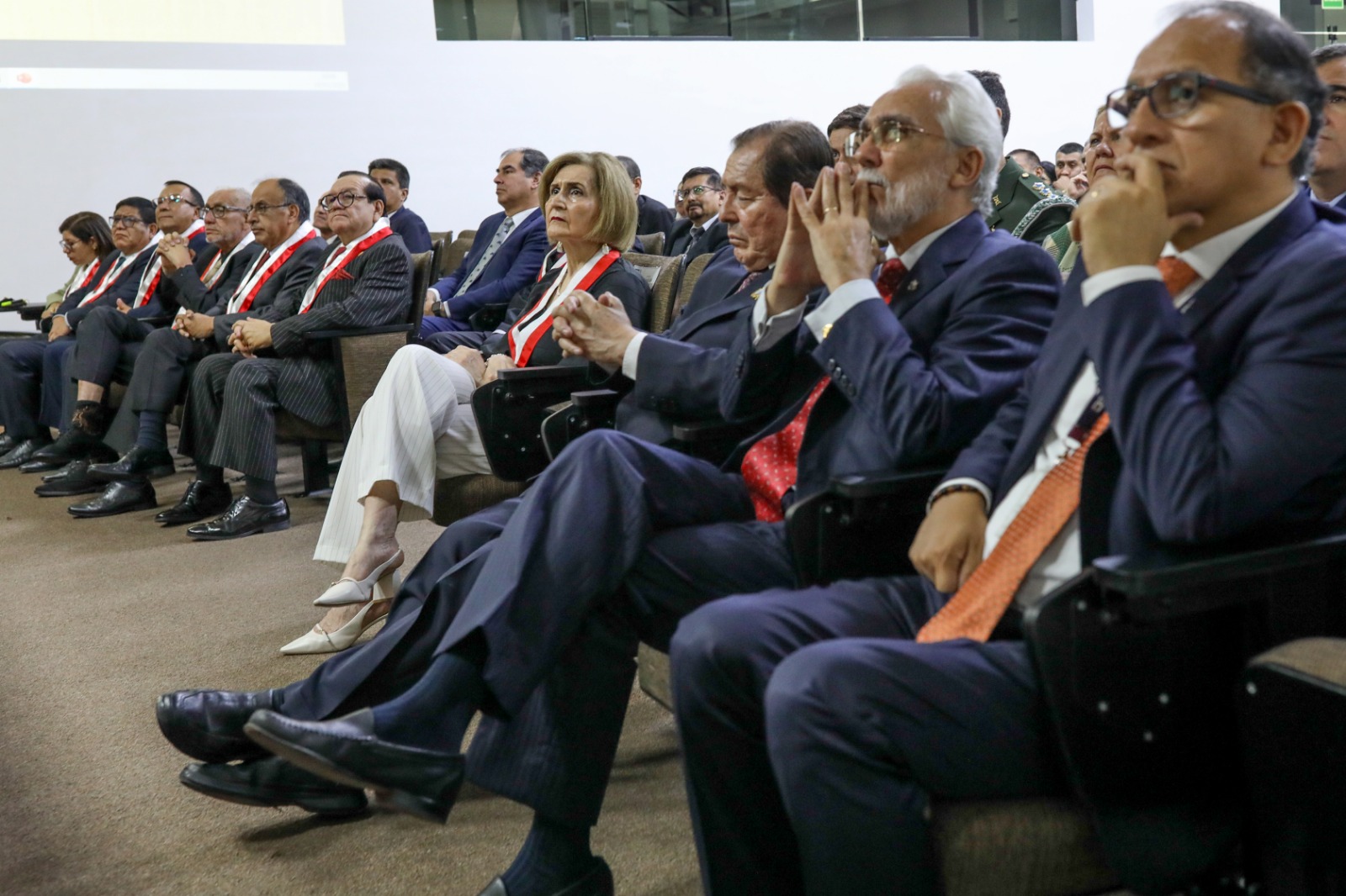 Posteriormente, la presidenta del TC, Luz Pacheco, junto al contralmirante CJ (R), Darío Vásquez, participaron en la toma de fotografías con María Teixeira y Guido Amin, así como con los vocales supremos del FMP e invitados, caso del decano de la Facultad de Derecho de la Universidad Nacional Mayor de San Marcos (UNMSM), José Palomino Manchego, entre otros.