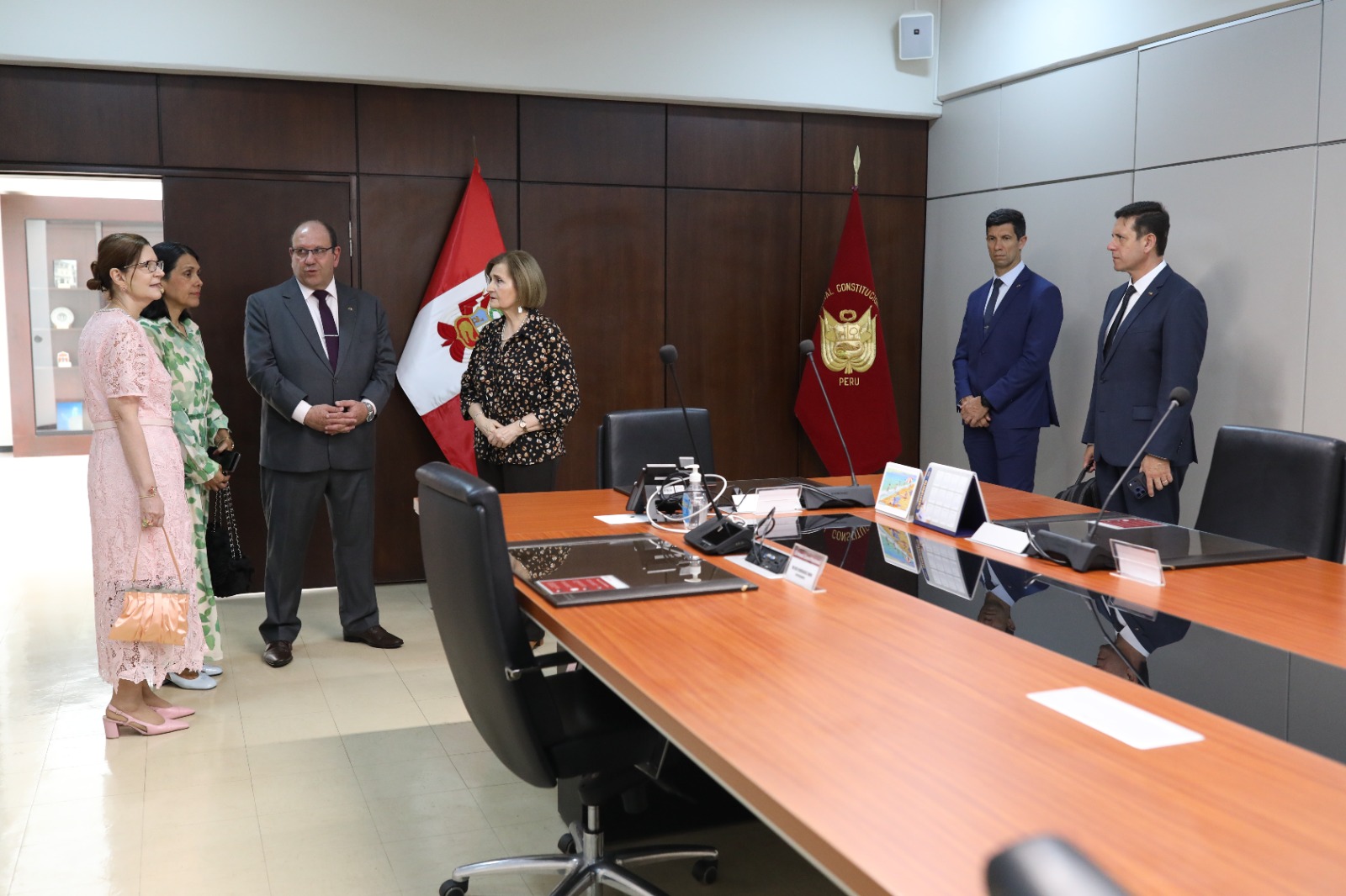 La presidenta del Tribunal Constitucional (TC), Luz Pacheco Zerga, recibió la visita protocolar de la presidenta del Superior Tribunal Militar (STM) de Brasil, ministra María Elizabeth Guimarães Texeira Rocha, y del General del Ejército de Brasil y ministro del STM, Guido Amin Naves.