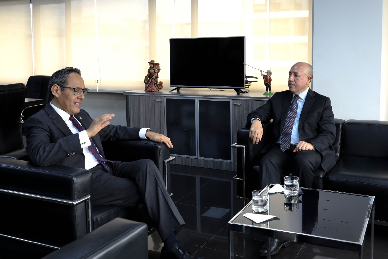 PRESIDENTE EN FUNCIONES DEL TC HELDER DOMÍNGUEZ RECIBIÓ LA VISITA PROTOCOLAR DEL PRESIDENTE DE INDECOPI ALBERTO VILLANUEVA