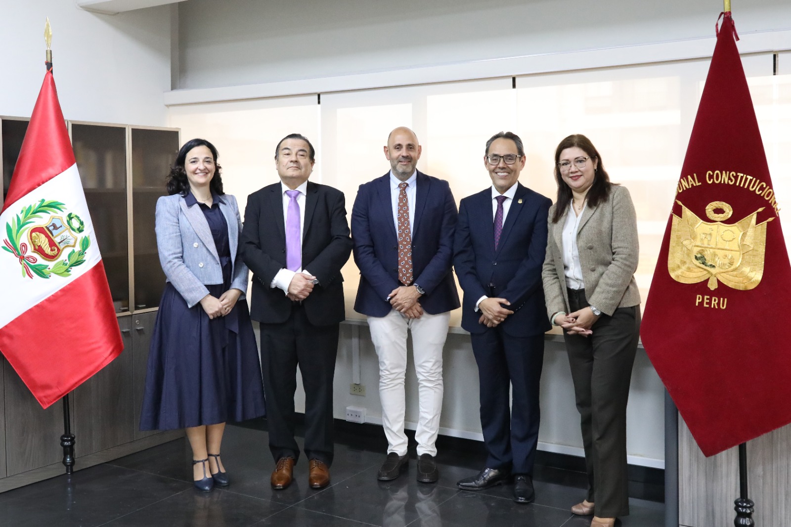 El vicepresidente del Tribunal Constitucional (TC), magistrado Helder Domínguez Haro, y el magistrado César Ochoa Cardich, director general del Centro de Estudios Constitucionales (CEC), recibieron la visita protocolar de una delegación de autoridades de la Universidad Internacional de la Rioja (UNIR).