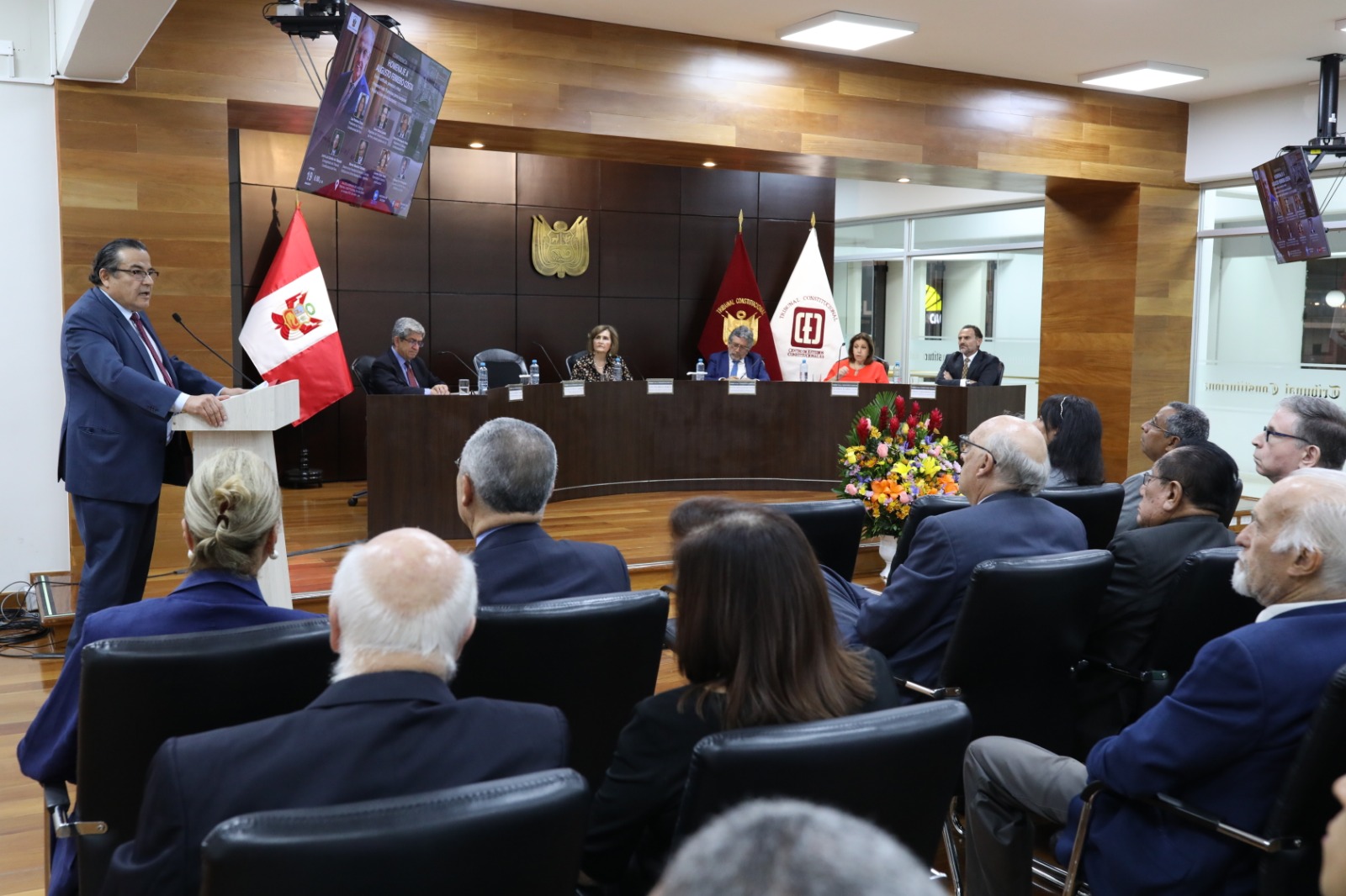 El homenaje tuvo como conferencistas a la presidenta del TC, magistrada Luz Pacheco Zerga, así como los magistrados del TC, César Ochoa Cardich, director general del CEC, y Manuel Monteagudo Valdez. Asistió, además el magistrado Francisco Morales Saravia.
