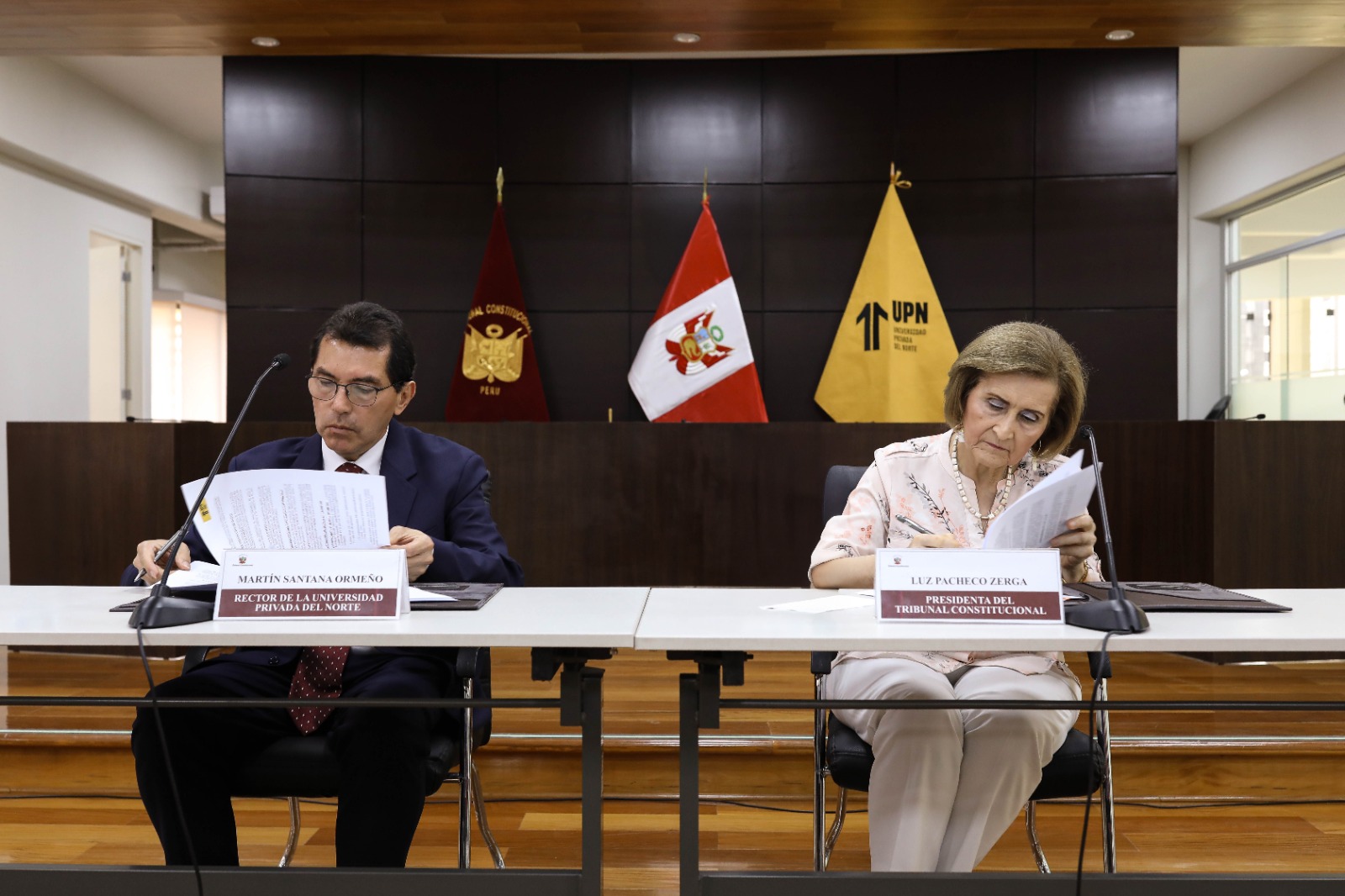 La presidenta del Tribunal Constitucional (TC), magistrada Luz Pacheco Zerga, y el rector de la Universidad Privada del Norte (UPN), Jorge Martín Santana Ormeño, suscribieron un Convenio Marco de Cooperación Interinstitucional para desarrollar acciones conjuntas en materia de investigación, docencia, difusión y extensión con relación a los derechos fundamentales y temas constitucionales en general.
