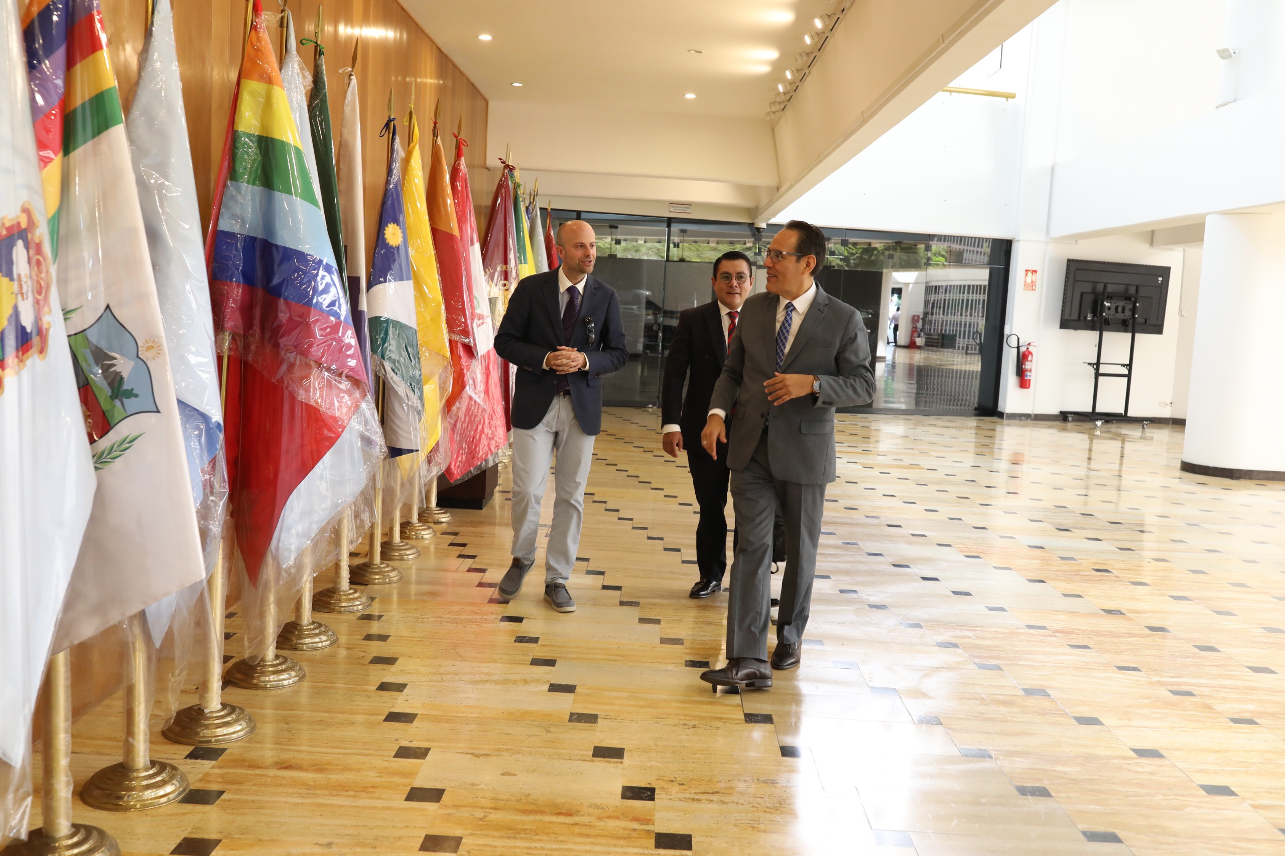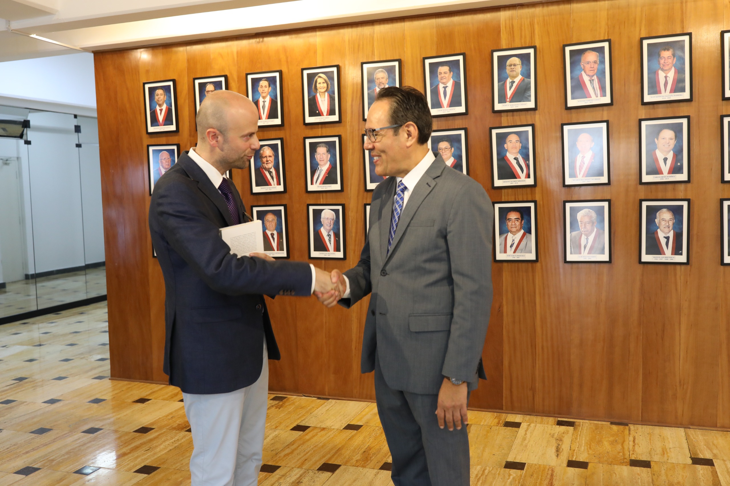 Durante las visitas protocolares, el profesor Héctor Álvarez García estuvo acompañado por el profesor de la Universidad de Lima, Erick Urbina.