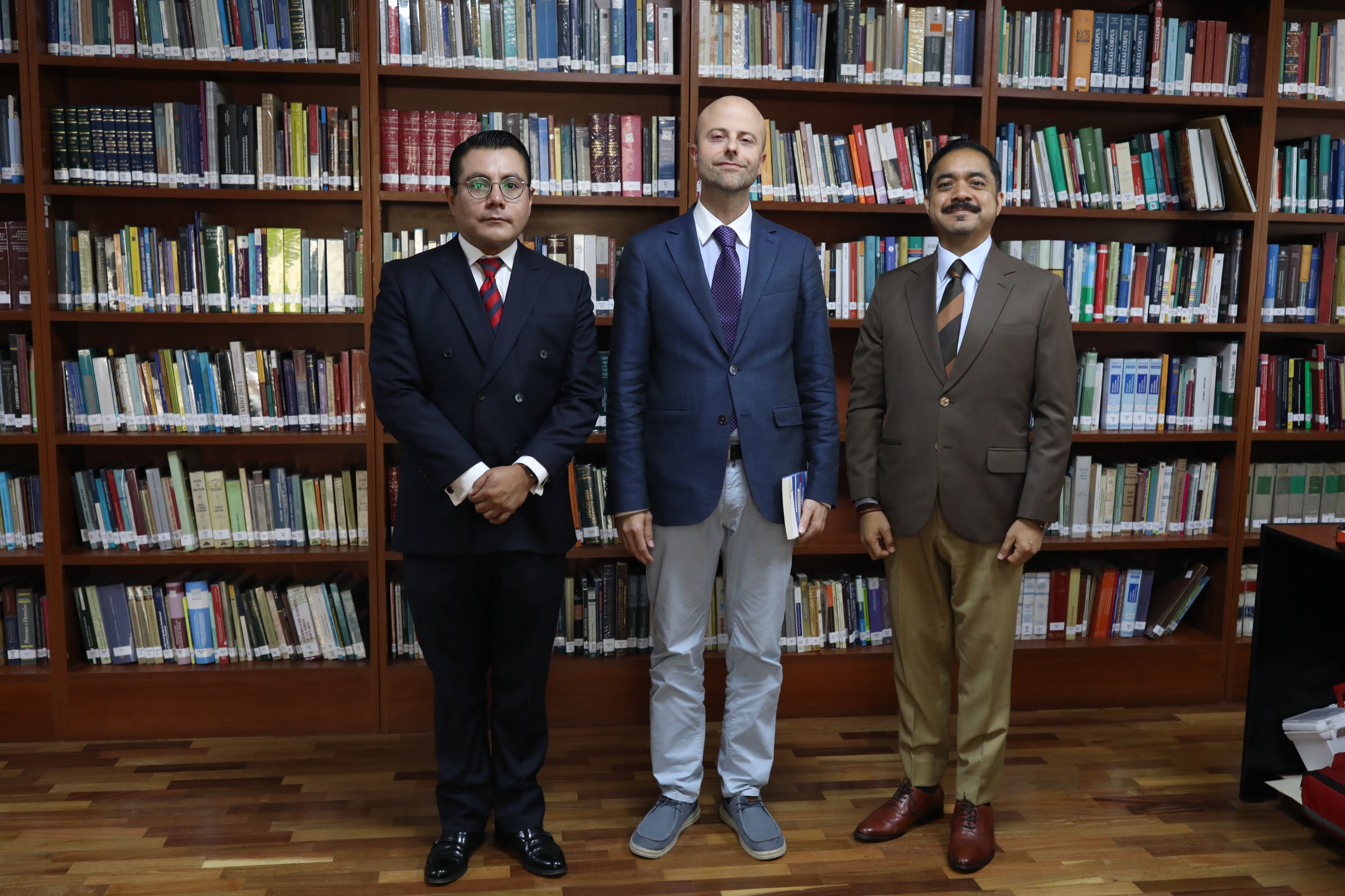 Posteriormente, el profesor Álvarez realizó una visita a la sede del Centro de Estudios Constitucionales (CEC) del TC, donde fue recibido por el asesor jurisdiccional con funciones de director ejecutivo del CEC, Juan Manuel Sosa Sacio, quien le explicó sobre el funcionamiento y actividades académicas que realiza el CEC impartiendo pedagogía constitucional.